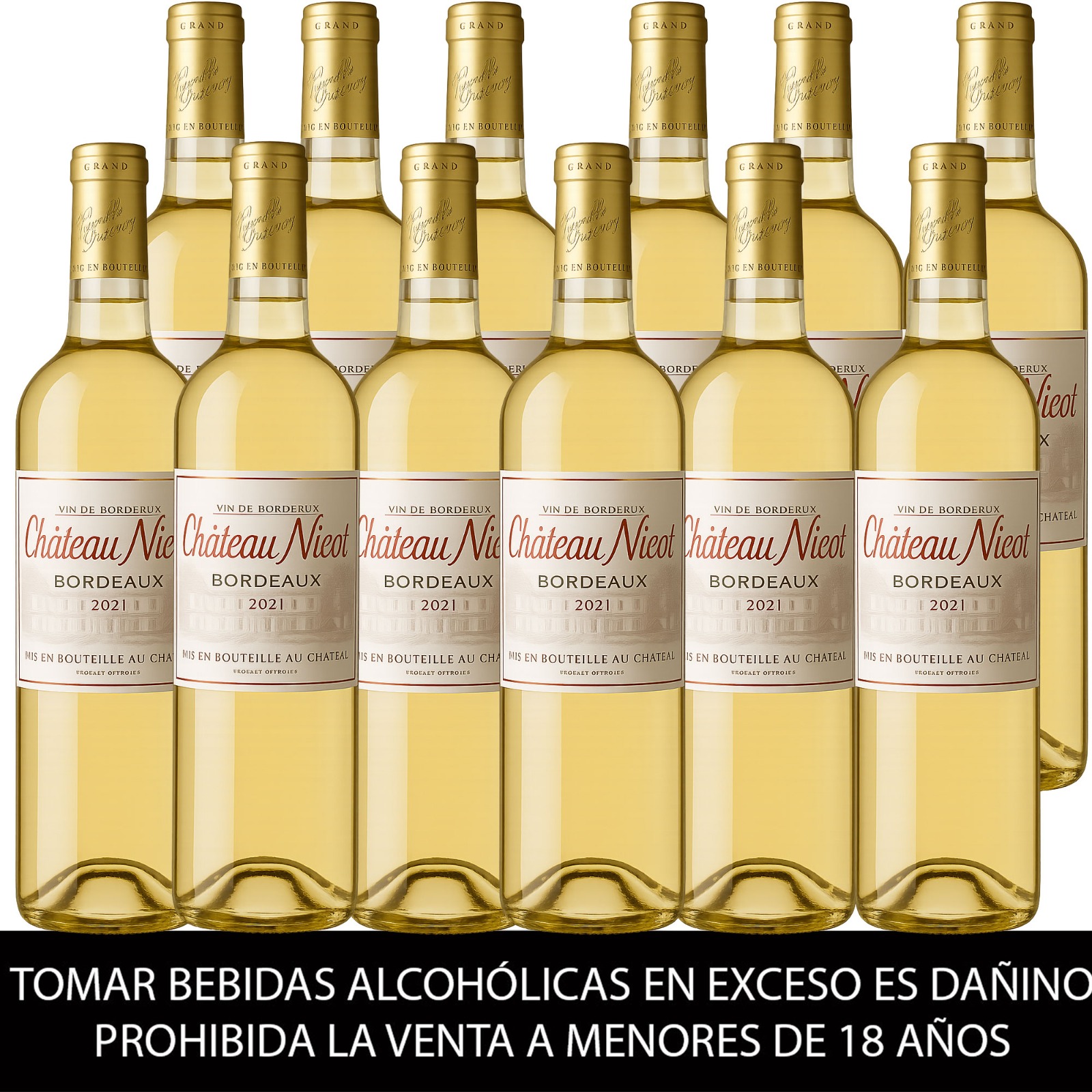 12 Botellas de Vino Blanco, Chateau Nicot, Bordeaux, Francia