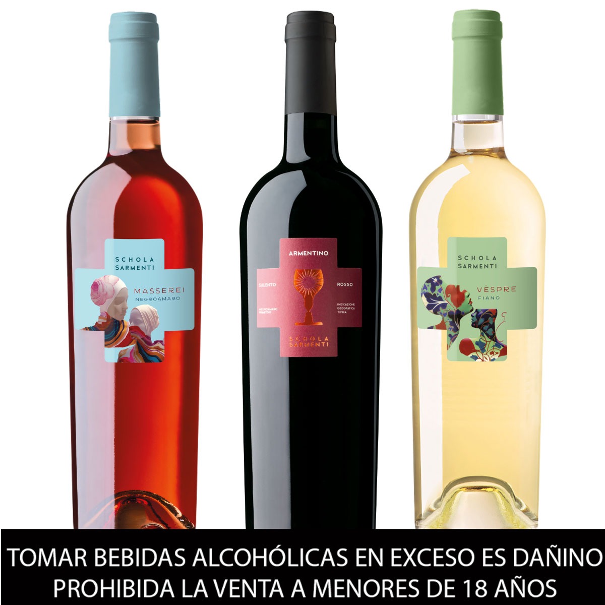 - Armentino, Schola Sarmenti, Salento IGT blend de 50% Uvas Negroamaro y 50% uvas Primitivo.